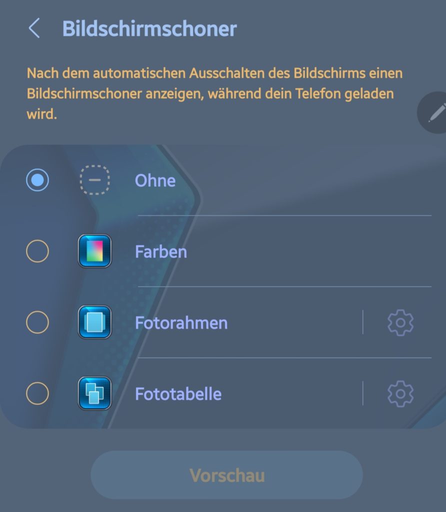 Hier kann man nun wählen, welche Art von Bildschirmschoner Du möchtest.
