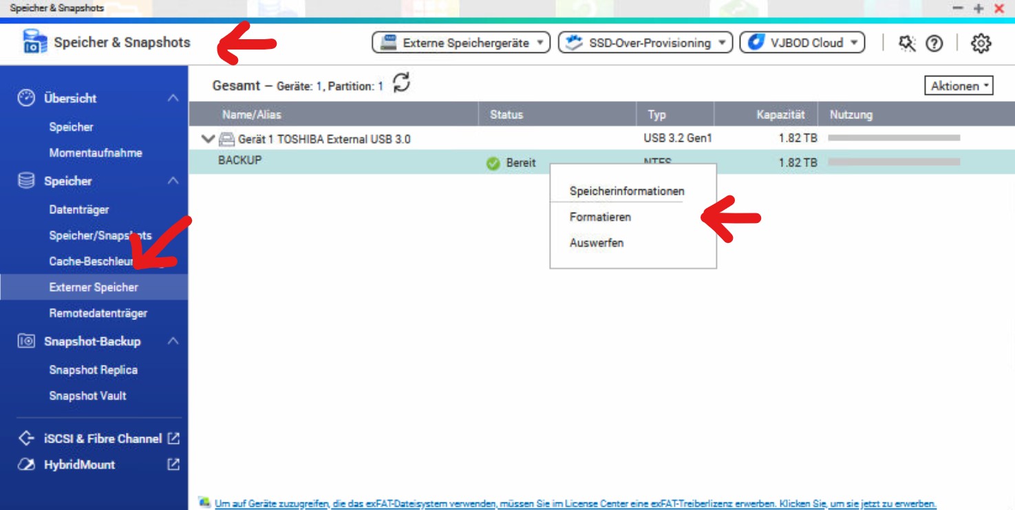 Wie kann man eine externe USB3 Festplatte an einer QNAP formatieren?
